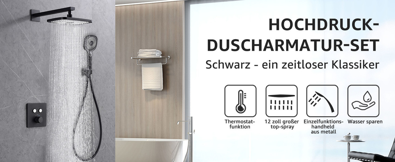 Mit ihrem eleganten Design, fortschrittlichen Funktionen und robuster Konstruktion wird Ihnen unsere schwarze Dusche mit konstanter Temperatur ein entspannendes und luxuriöses Duscherlebnis bieten.